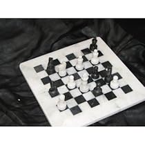 Stunning 8" x 8" White Marble & Black Marble Chess set delicately hand carved pieces. King is 1.5" tall and pawns are 1" tall. Chess Squares are 1" x 1".