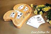 This is a three-tracked cribbage perfect hand or the best hand of 29 board hence it takes the form of the number 29 which is the highest possible score in the game. This board includes a background image of playing cards. On the reverse side of the board are storage compartments for the pegs and the playing cards to prevent them from getting lost when not in use. It's a perfect gift for any game collector.